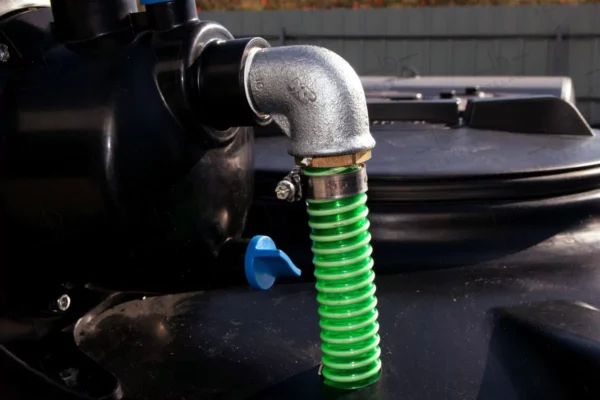 Il y a plusieurs possibilités dans la partie inférieure et la partie supérieure de la citerne à eau de pluie pour raccorder une vanne, un tuyau ou une pompe.