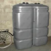 Les citernes à mazout grises en polyéthylène (PE) ont une double paroi, sont UV-résistantes, très compactes et en même temps très robustes. Elles disposent de poignées intégrées, peuvent facilement être déplacées par deux personnes et passent même par une porte.
