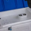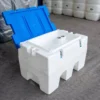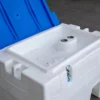 Une cuve chantierd de 410 litres en plastique (PE) litres prend peu de place et peut facilement être chargée, déchargée ou déplacée, même à l’état rempli. Des passages de fourche sont prévus en bas de la cuve pour la manutention par un chariot élévateur ou un transpalette (en état vide ou rempli).