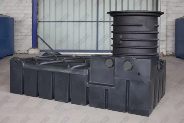 La fosse septique aérienne ultraplate en plastique (PE) de 1500 litres a une hauteur limitée. De cette façon, la fosse aérienne est facilement maniable et installable à deux personnes.