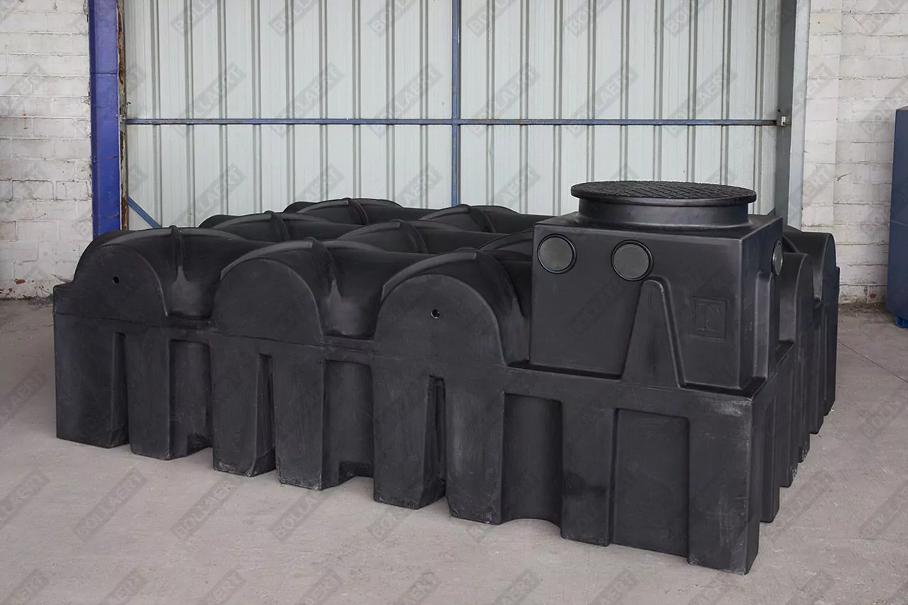La fosse septique aérienne ultraplate en plastique (PE) de 5000 litres a une hauteur limitée. De cette façon, la fosse aérienne est facilement maniable et installable à deux personnes.